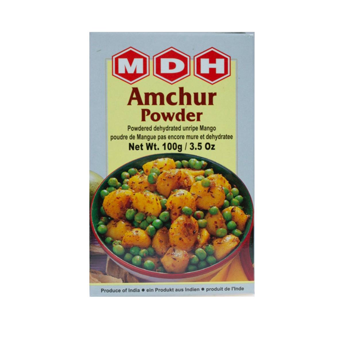 L'amchur est de la poudre de mangue séchée. C'est une poudre utilisée comme une épice couramment utilisée dans la cuisine indienne. Elle est fabriquée à partir de tranches de mangues vertes non mûres qui sont séchées au soleil, puis broyées en poudre fine. L'amchur est utilisé pour ajouter une saveur acide et légèrement sucrée aux plats.