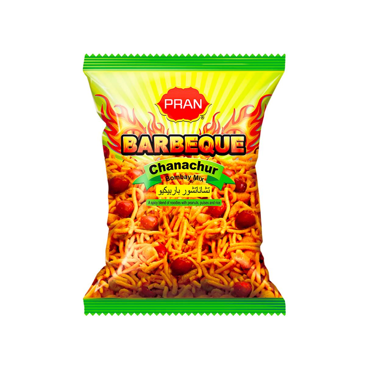 Mélange croustillant d'ingrédients tels que les pois chiches grillés, les noix de cajou, les cacahuètes, les raisins secs et les épices aromatiques, le tout avec une touche de saveur barbecue. C'est un mélange apéritif épicé très populaire en Asie du Sud, en particulier au Bangladesh. Il est fabriqué par la société agroalimentaire PRAN
